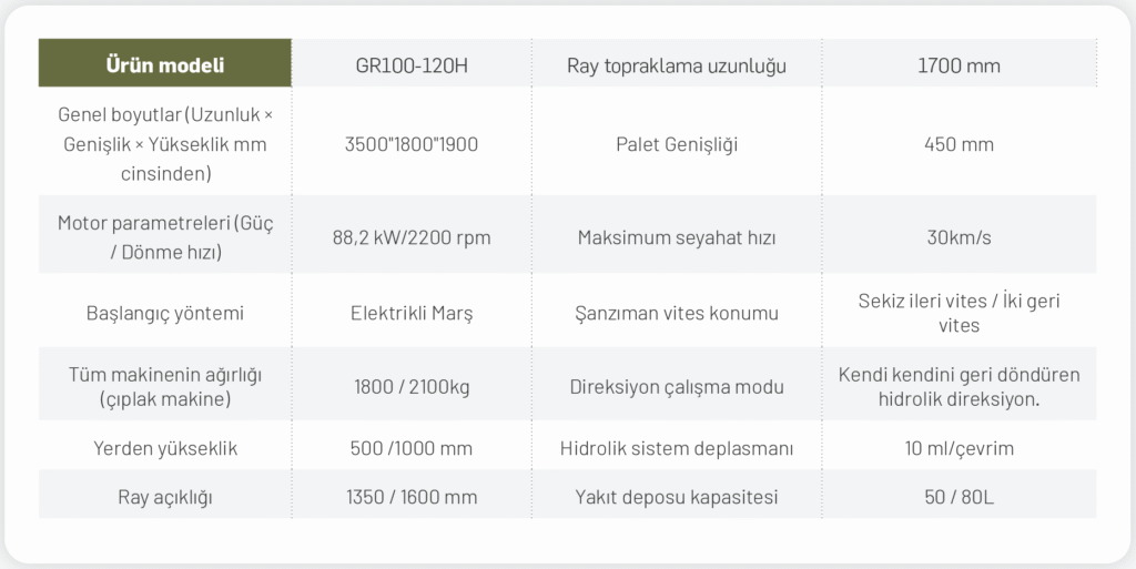 Grace 120HP paletli traktör, yalnızca güçlü bir iş makinesi değil; aynı zamanda konfor, dayanıklılık ve çok yönlülüğü bir arada sunan profesyonel çözüm. Tarımda ve inşaatta en ağır koşullar için tasarlanmış bu model, yüksek performans ve uzun ömürlü yapı arayan profesyonellerin vazgeçilmez tercihi.